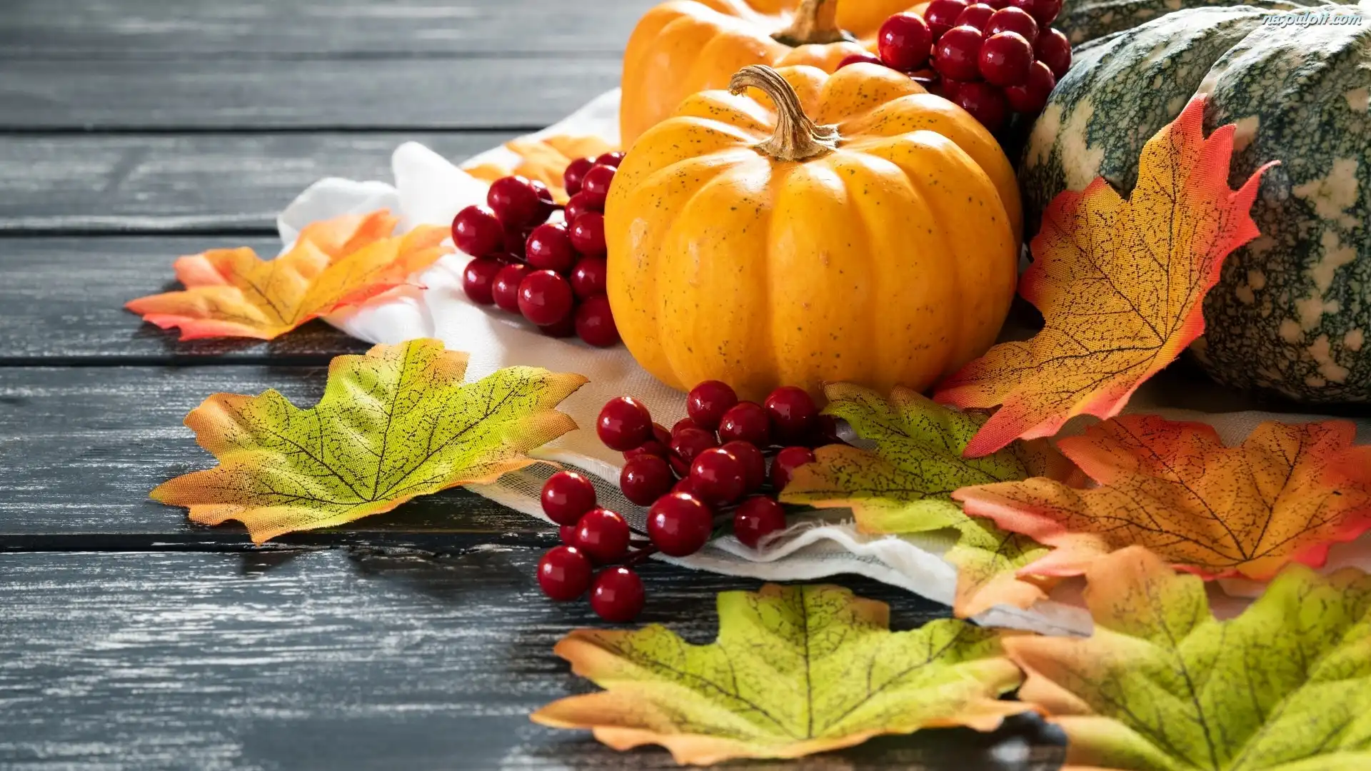 Deski, Czerwone, Liście, Dynie, Jagody Na Pulpit