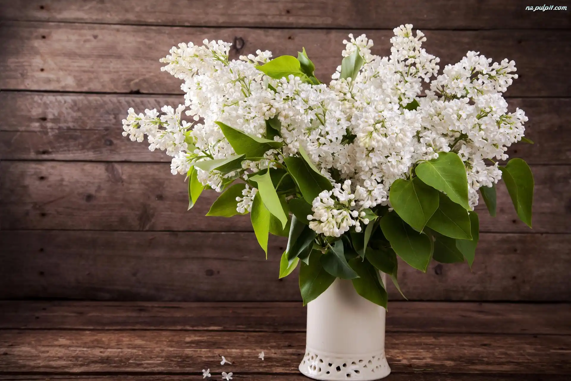 Deski, Biały, Bez, Kwiaty, Wazon Na Pulpit