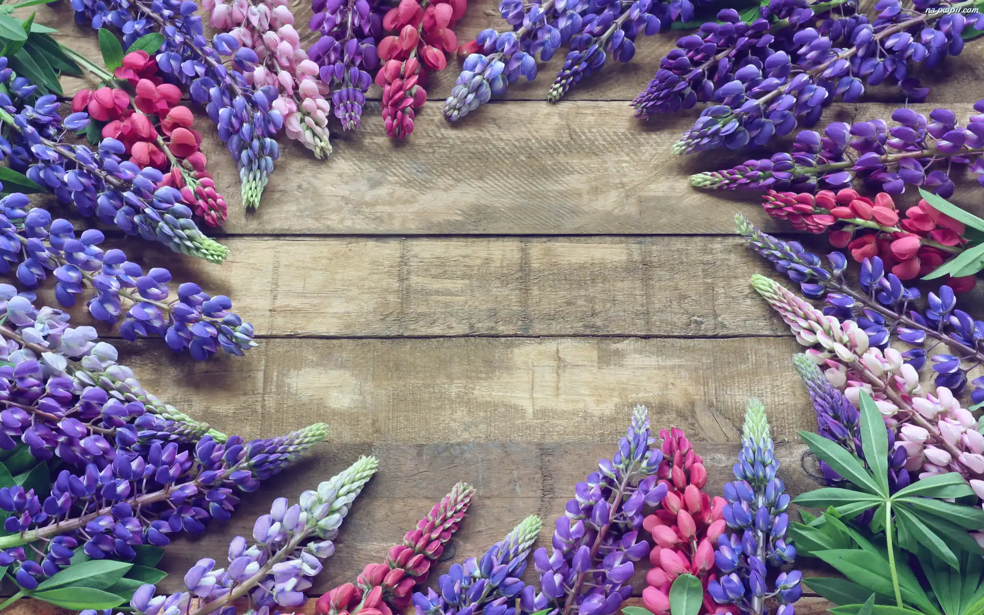 Deski, Łubiny, Kolorowe, Kwiaty, Liście Na Pulpit