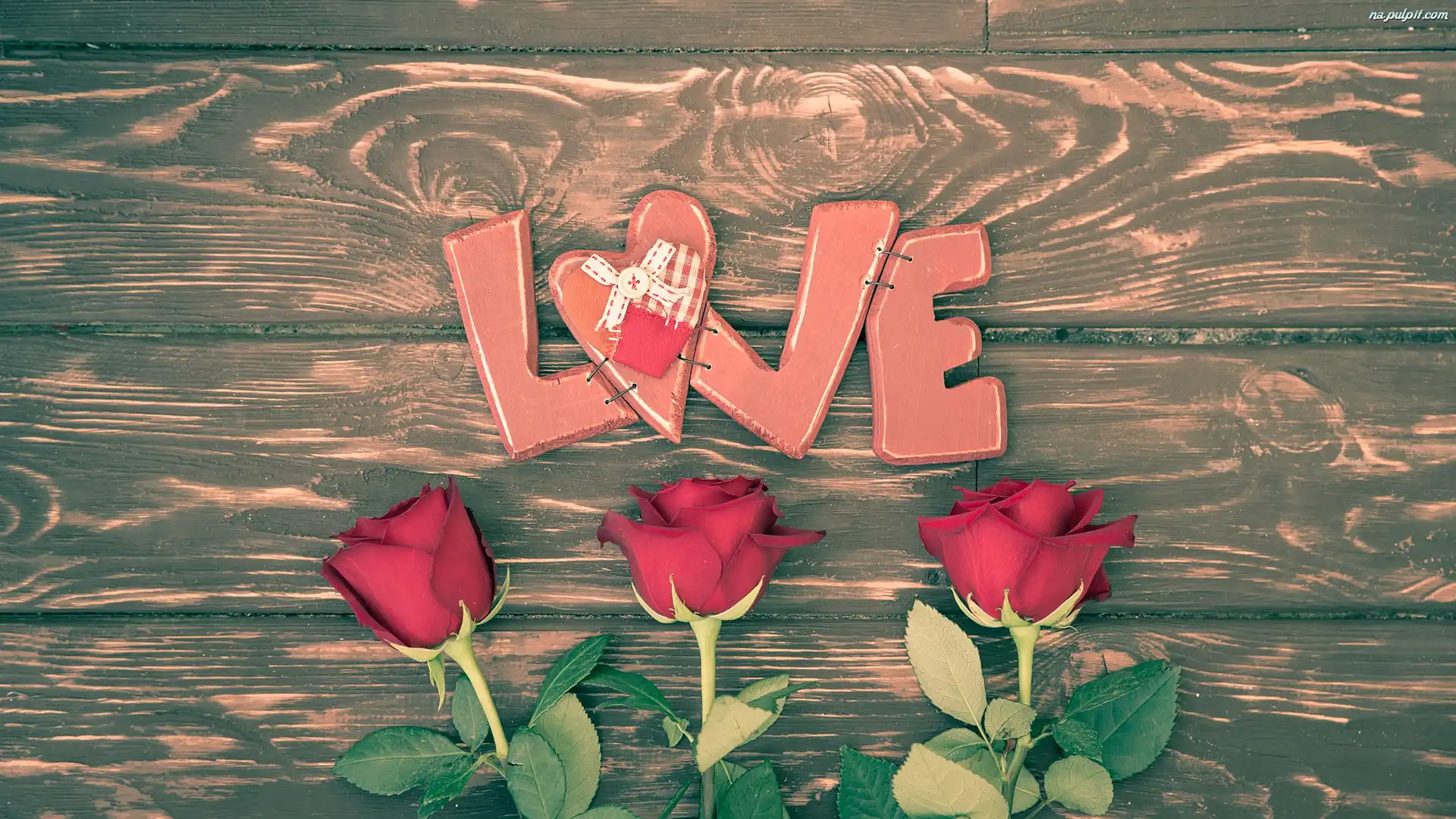 Deski, Trzy, Love, Napis, Róże Na Pulpit