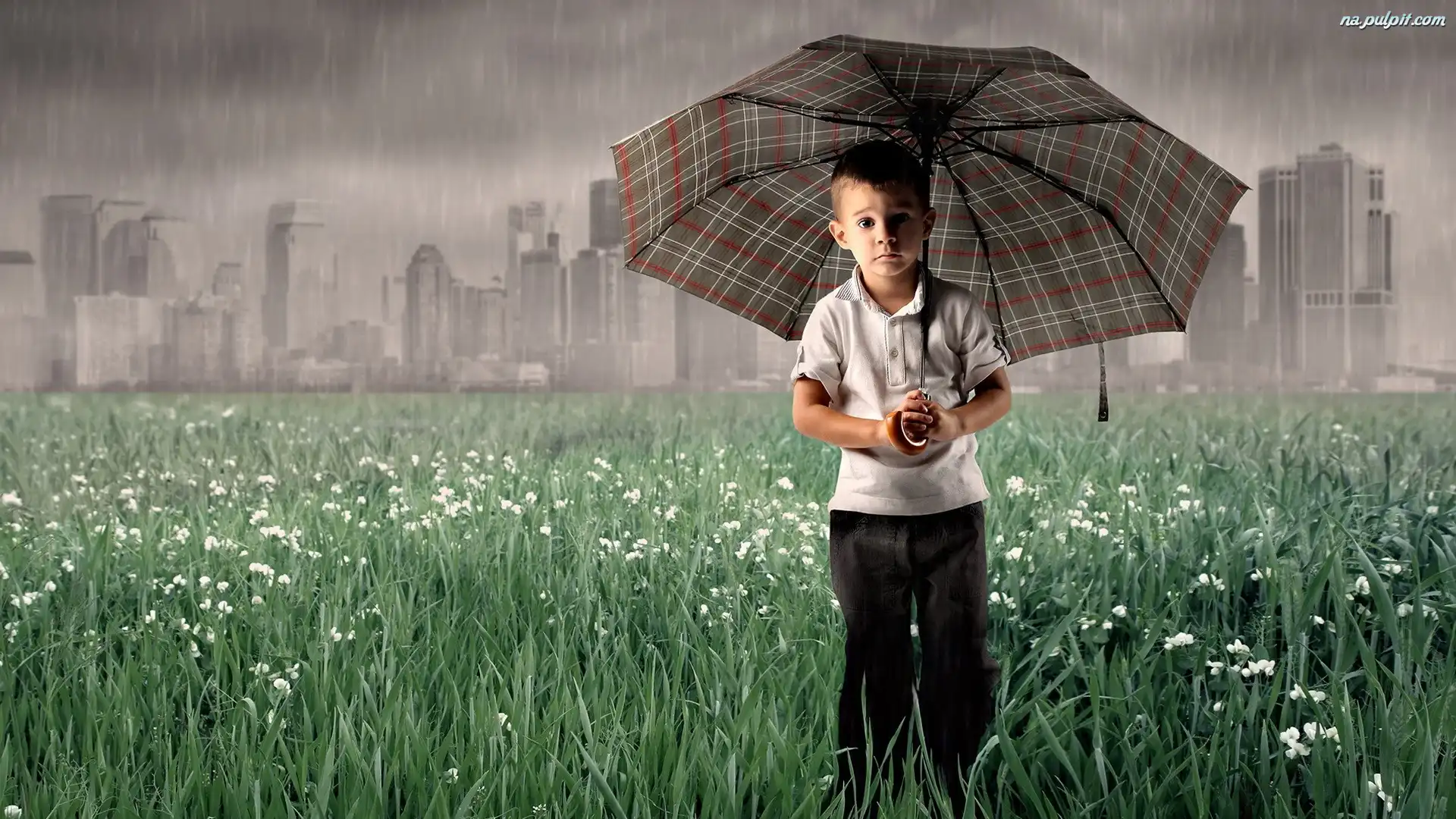 Deszcz, Pole, Chłopczyk, Parasol Na Pulpit