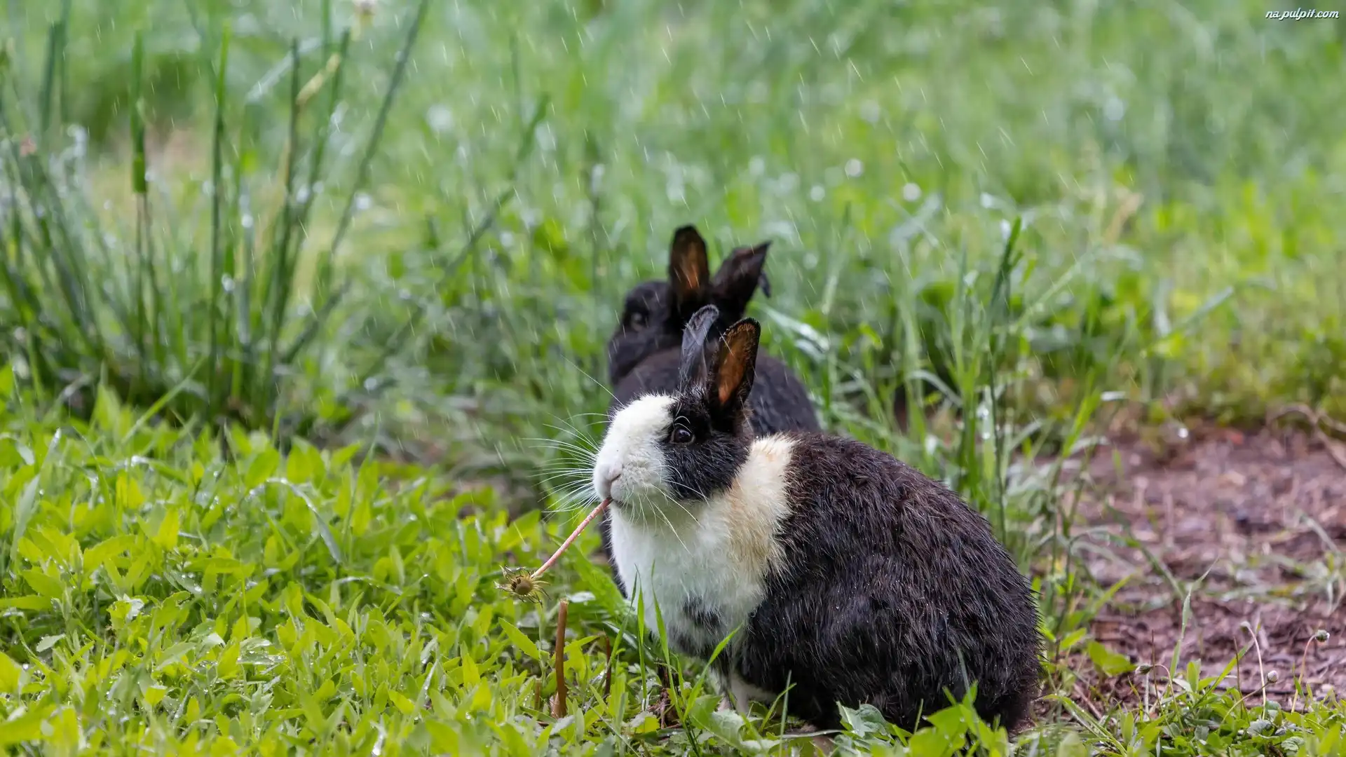 Deszcz, Króliki, Dwa, Trawa Na Pulpit