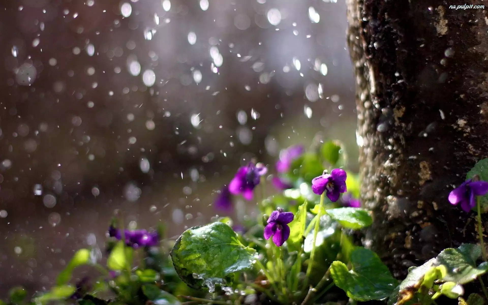 Deszcz, Pień, Fiołki, Drzewa Na Pulpit