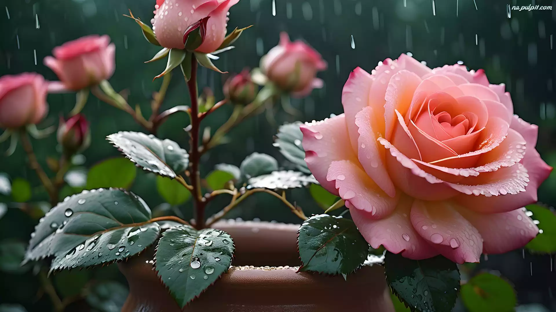 Krople, Kwiat, Różowa, Deszcz, Róża, Grafika Na Pulpit