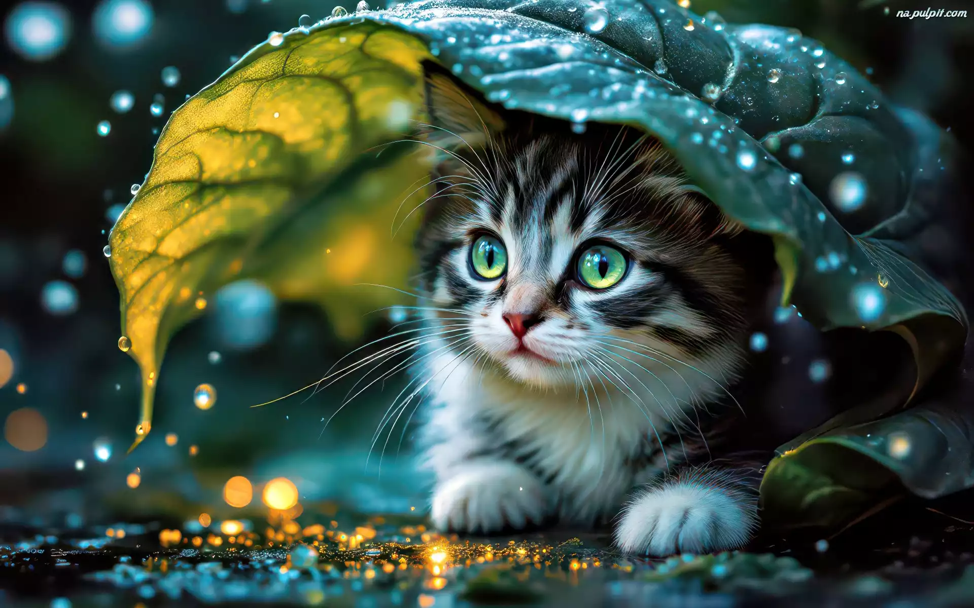 Kot, Liść, Krople, Deszcz Na Pulpit
