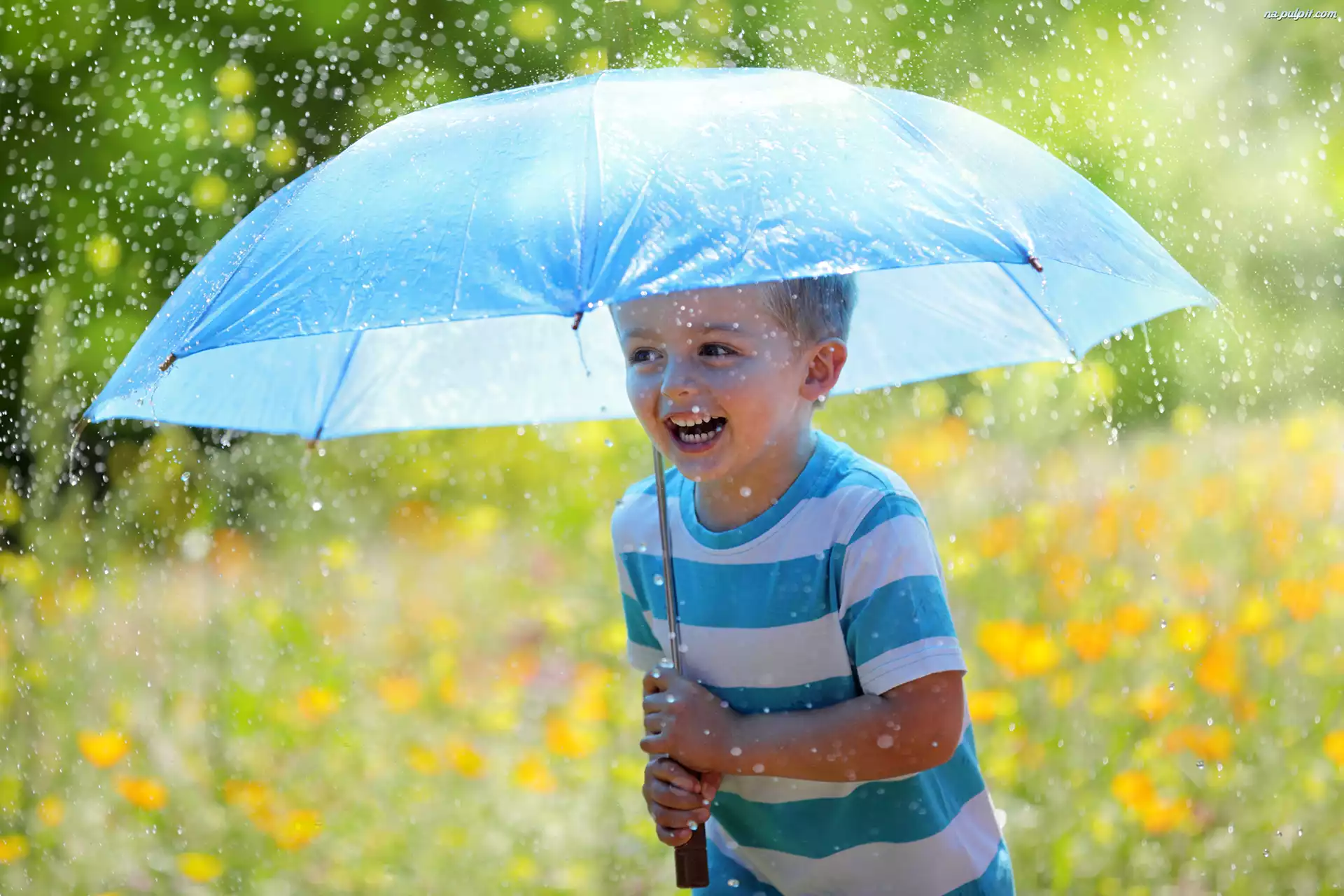 Parasol, Deszcz, Chłopiec Na Pulpit