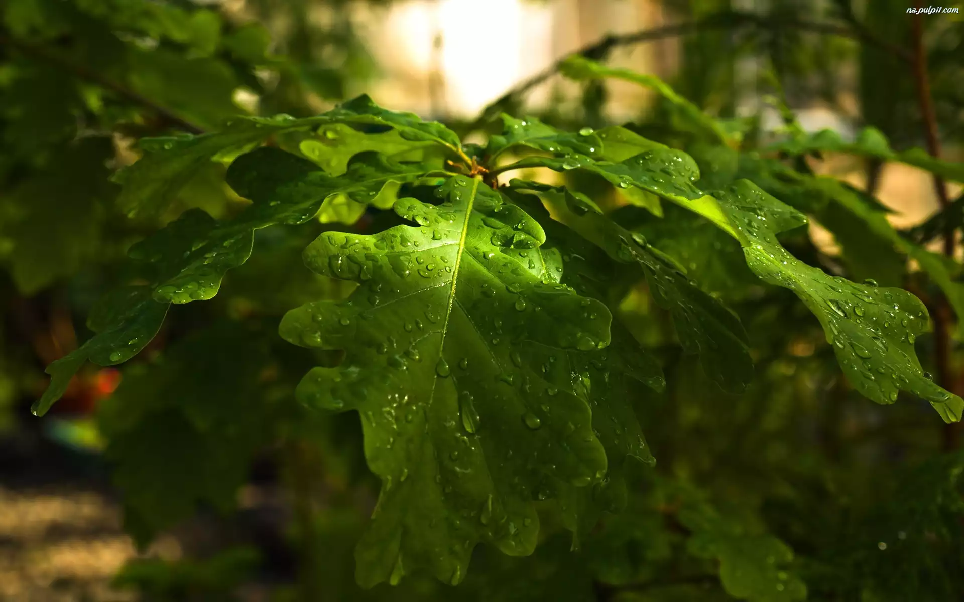 Deszczem, Liście, Zielone, Zroszone Na Pulpit