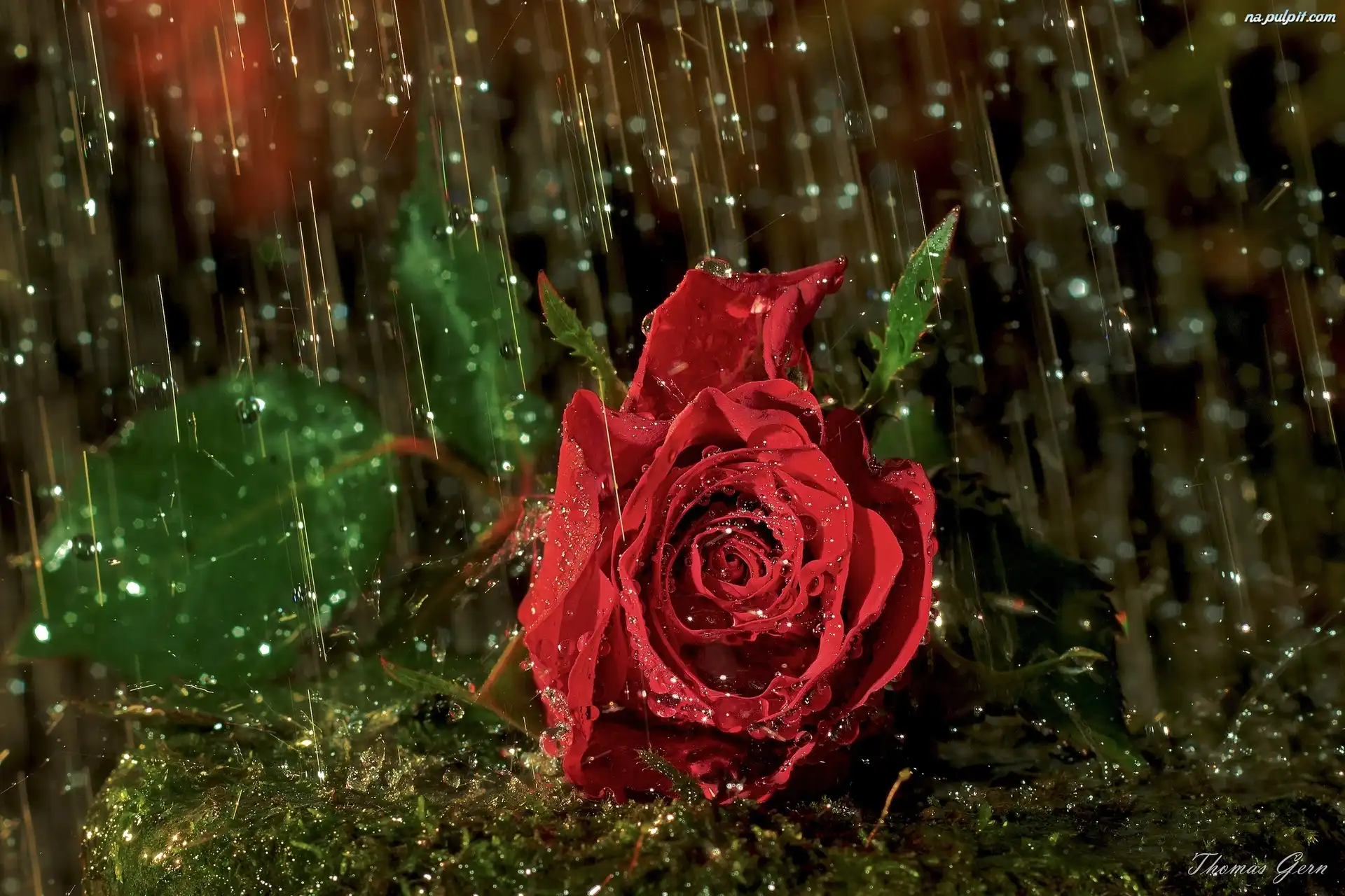 Deszczu, Róża, Czerwona, Krople Na Pulpit