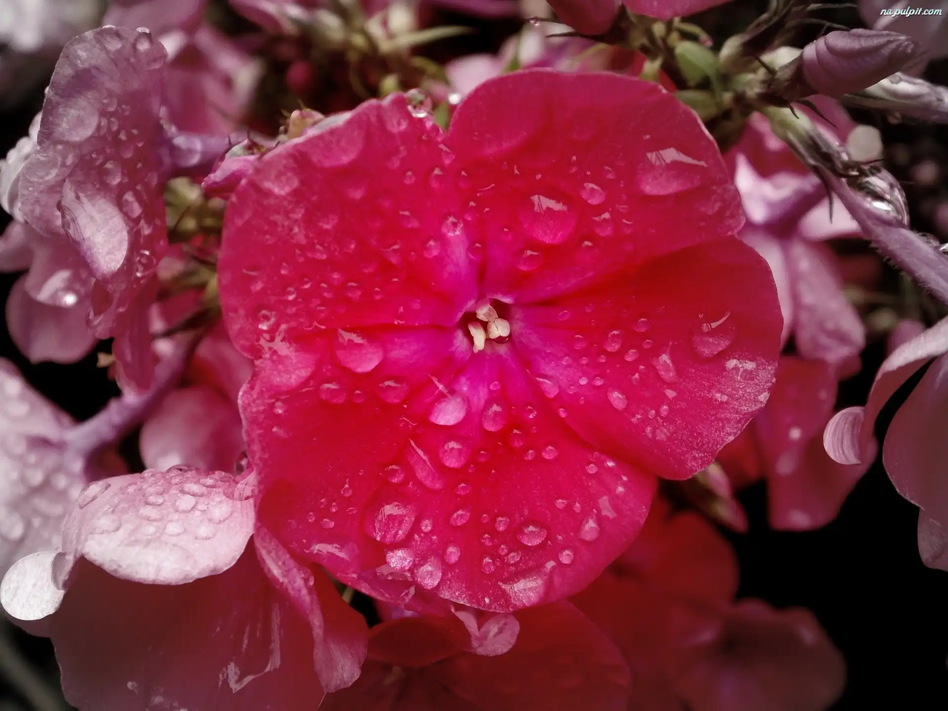 Deszczu, Różowy, Floks, Krople Na Pulpit
