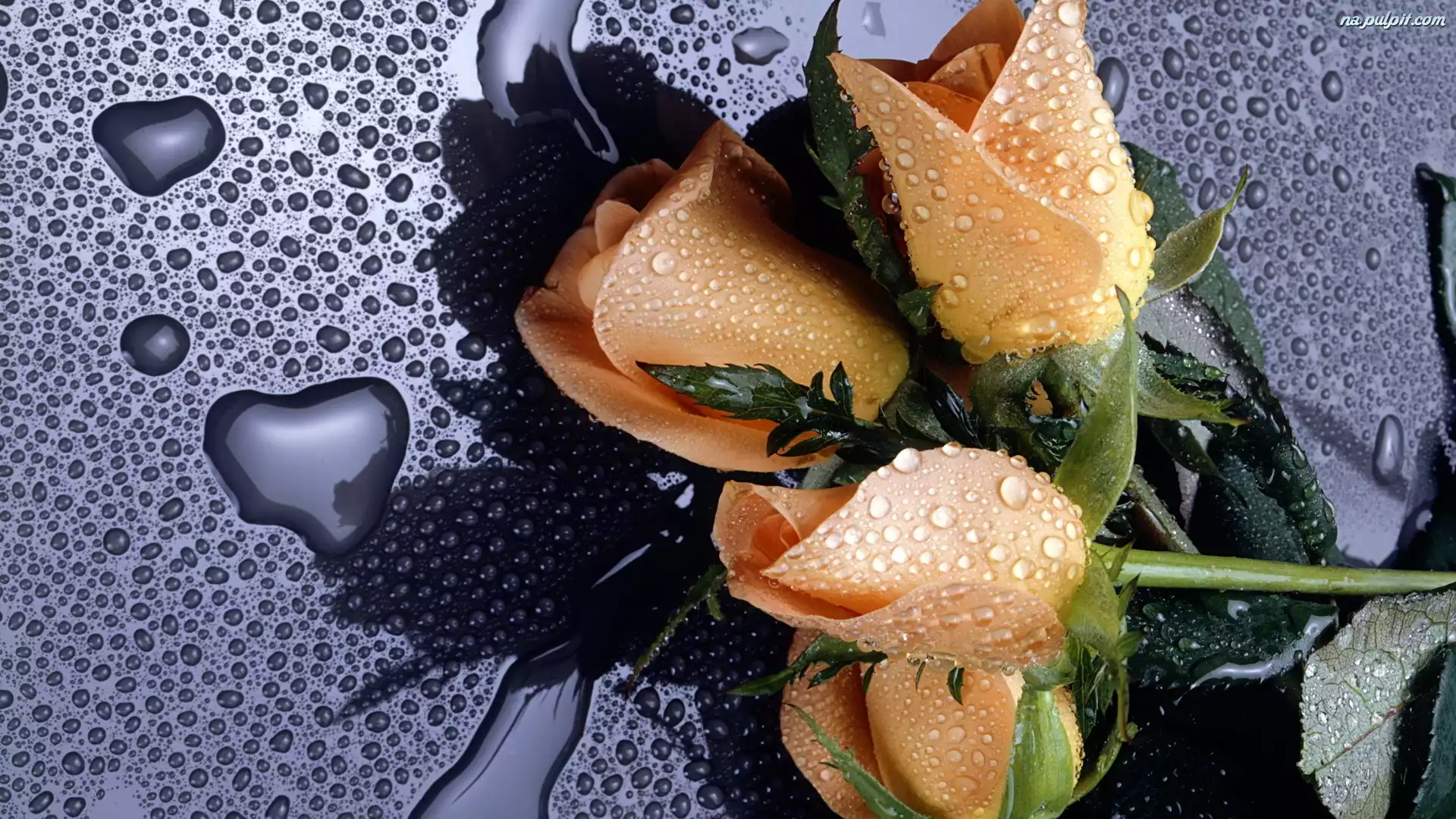 Deszczu, Róże, Herbaciane, Krople Na Pulpit