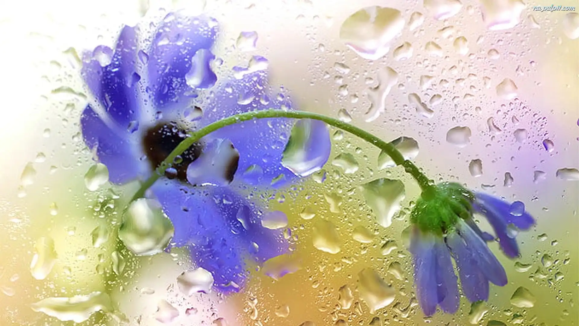 Deszczu, Kwiaty, Niebieskie, Krople Na Pulpit