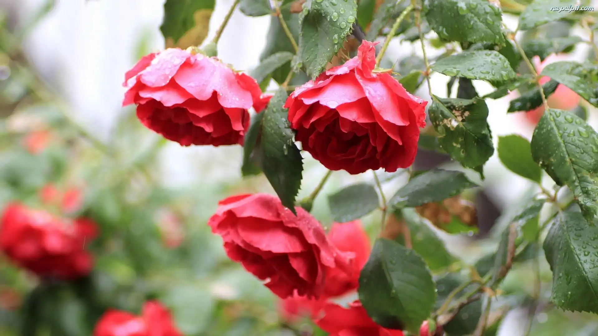 Deszczu, Róże, Ogród, Krople Na Pulpit