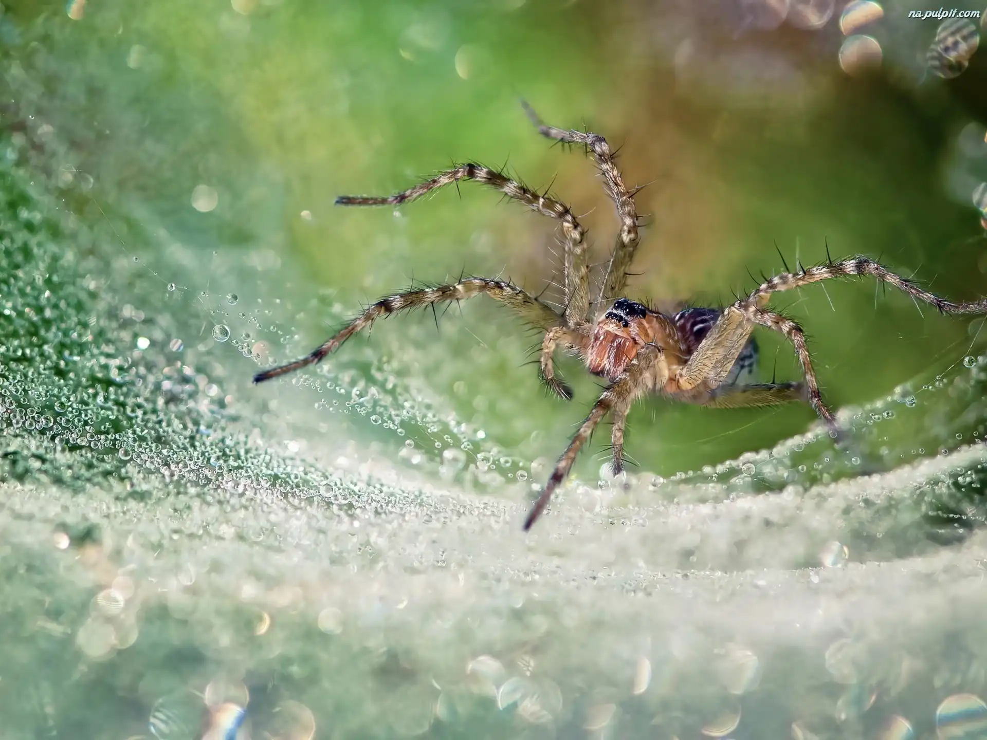 Deszczu, Pajęczyna, Pająk, Krople Na Pulpit