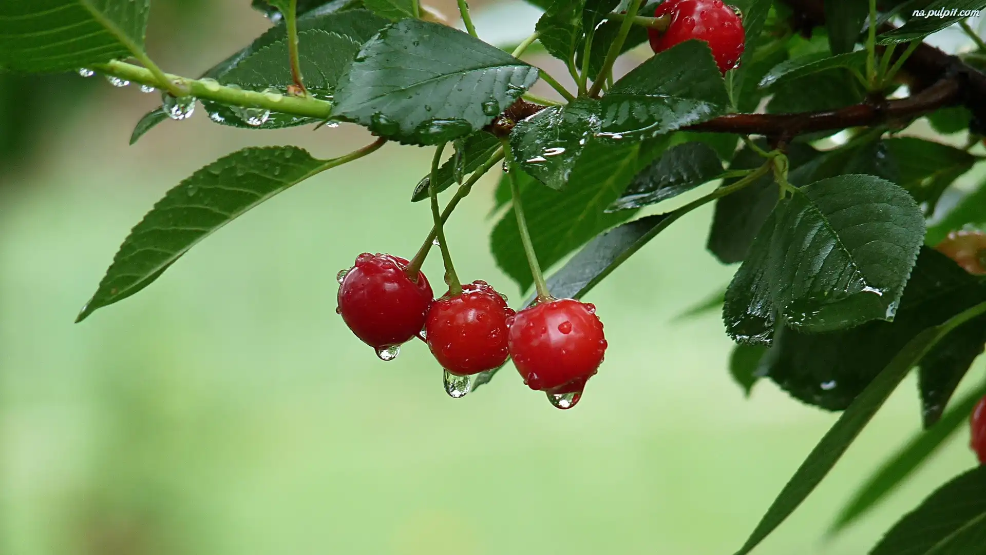 Deszczu, Gałązka, Wiśnie, Krople Na Pulpit