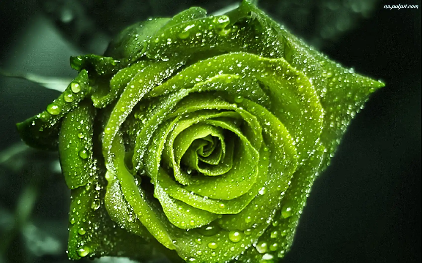 Deszczu, Róża, Zielona, Krople Na Pulpit