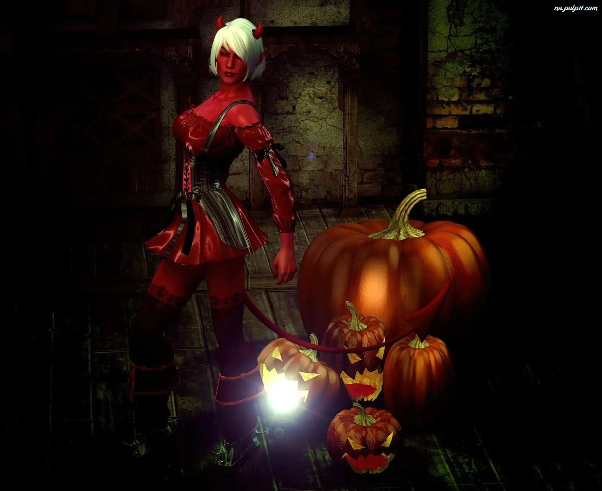 Diablica, Halloween, Grafika Komputerowa, Dynie