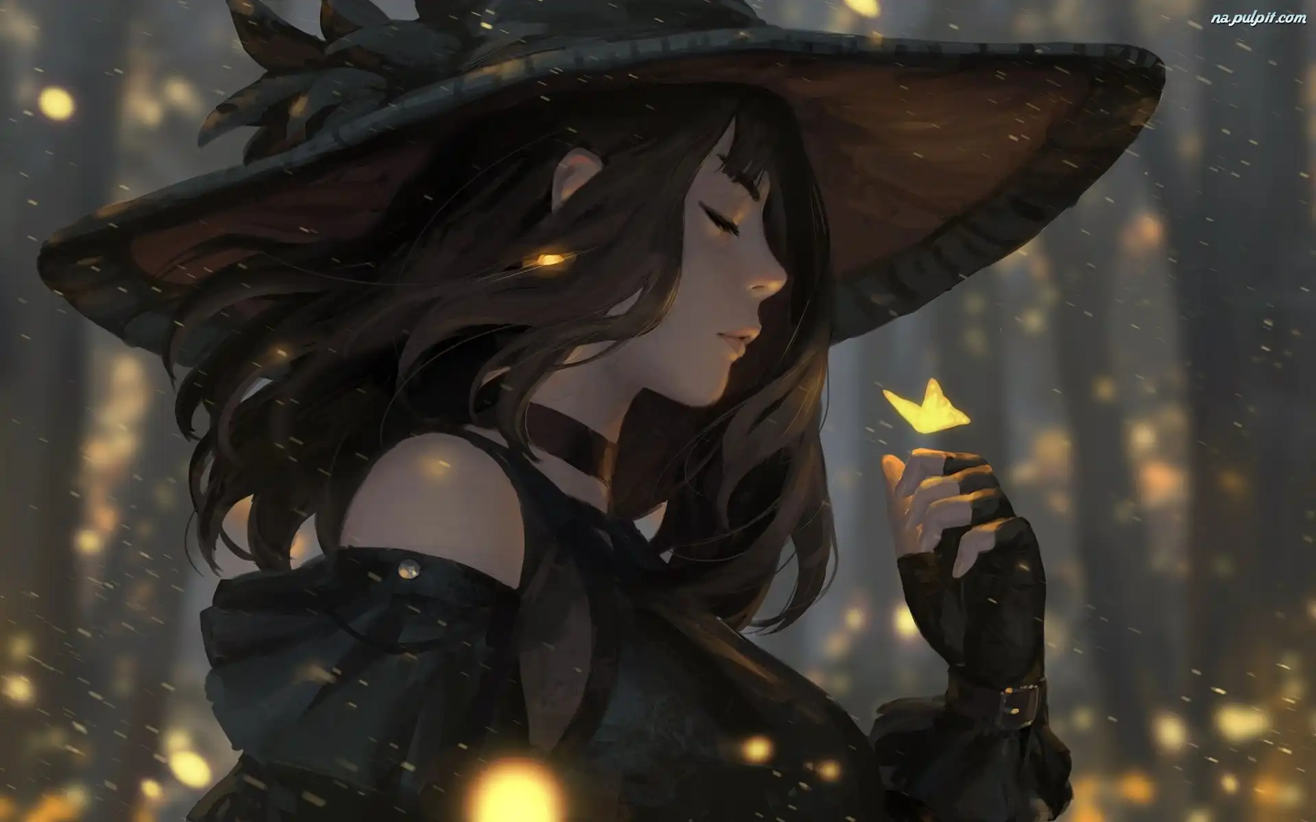 Digital Art, Kapelusz, Dziewczyna, Motyl Na Pulpit