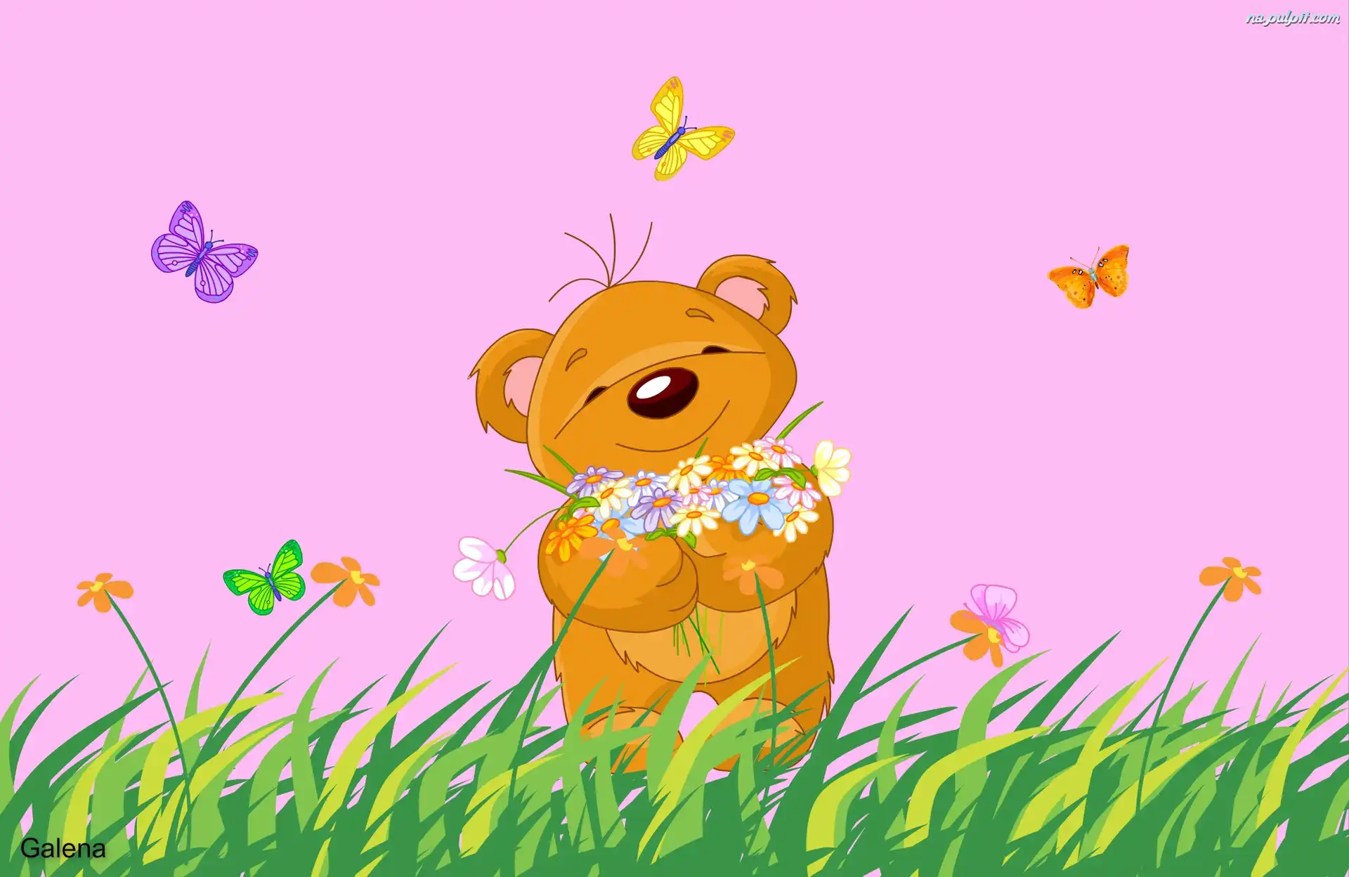 Dla dzieci, Motyle, Kwiaty, MiÅ›, Grafika Na Pulpit