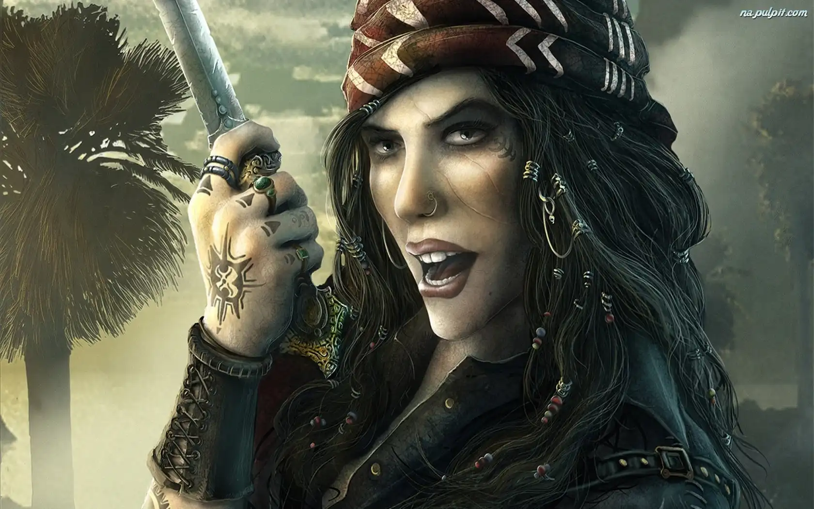 Dłoń, Chusta, Kobieta, Miecz