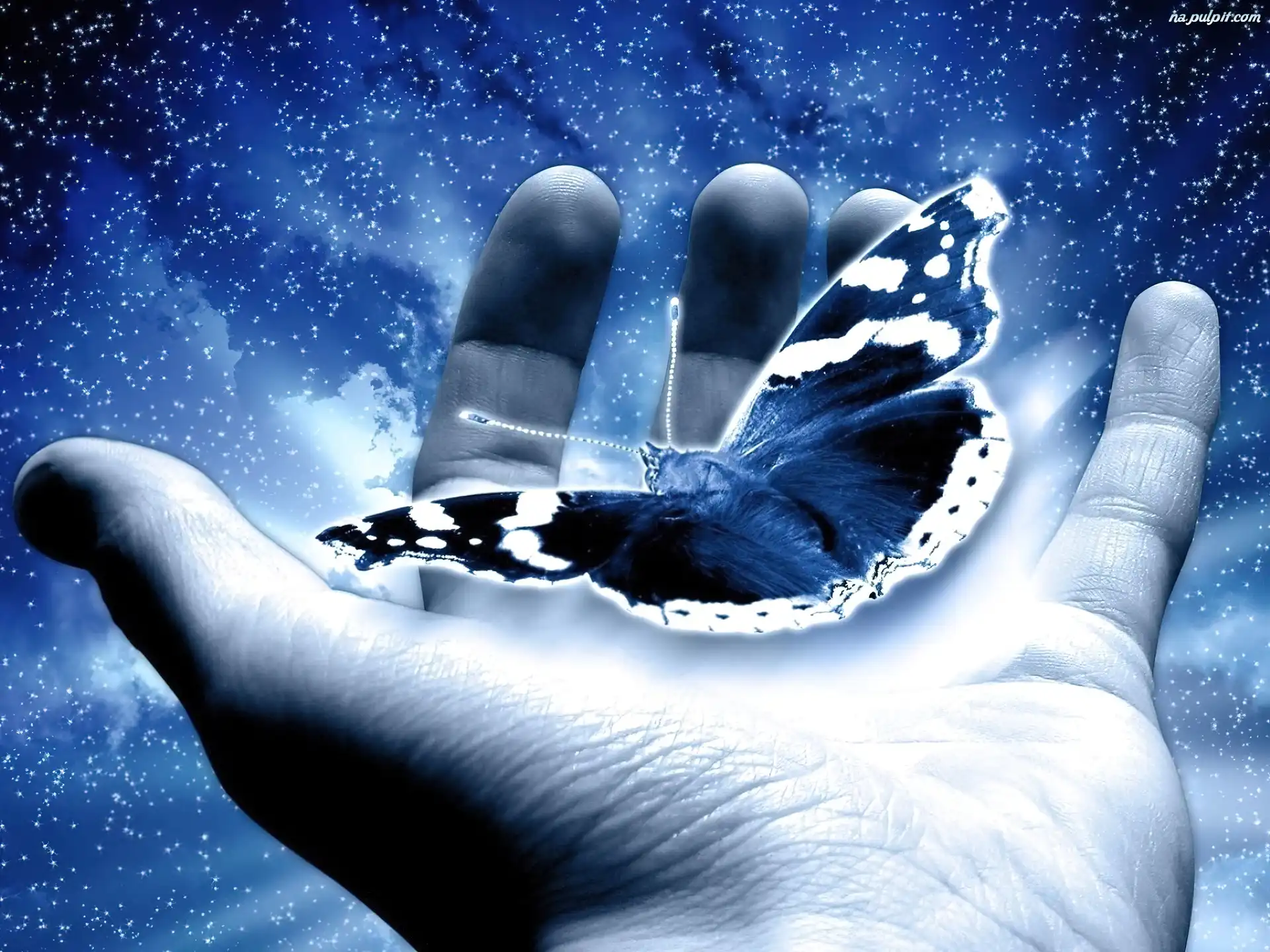 Motyl, Dłoń, Mężczyzny Na Pulpit