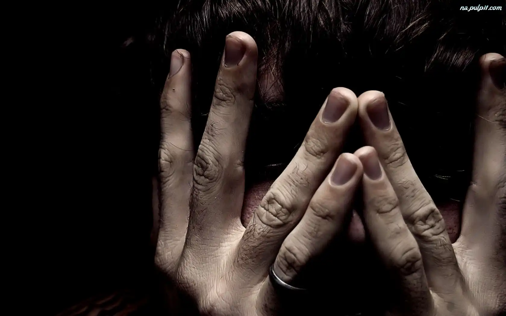 Dłonie, Zakryte, Człowiek, Oczy Na Pulpit