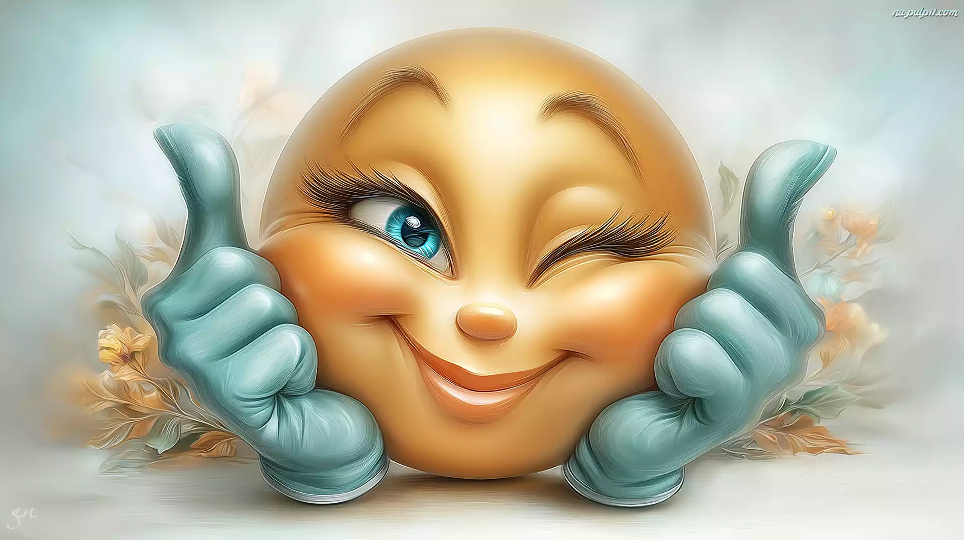 Emotikon, Dłonie, Kciuki, Grafika AI Na Pulpit