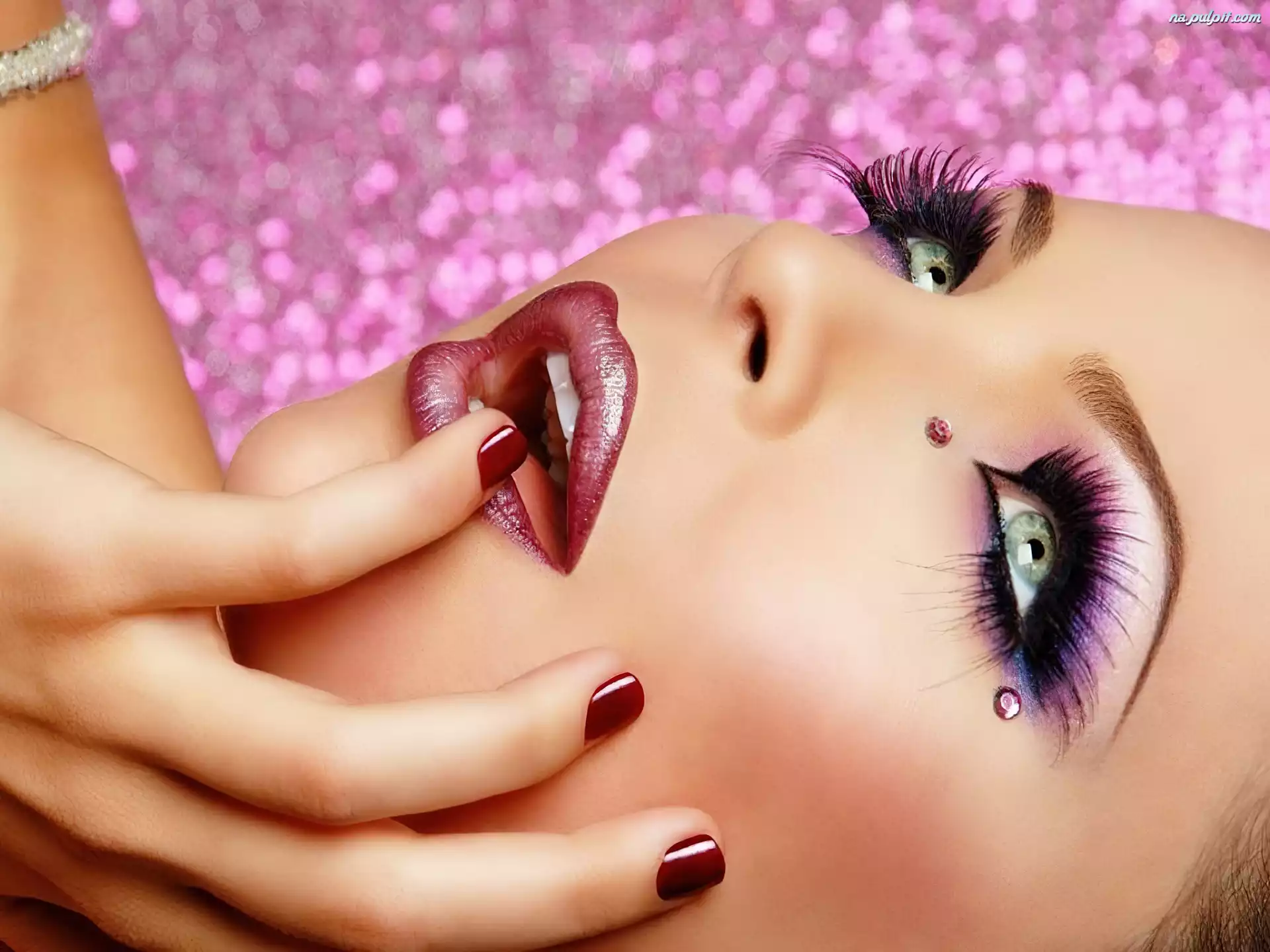 Dłonie, Czerwone, Makijaż, Kobieta, Usta Na Pulpit