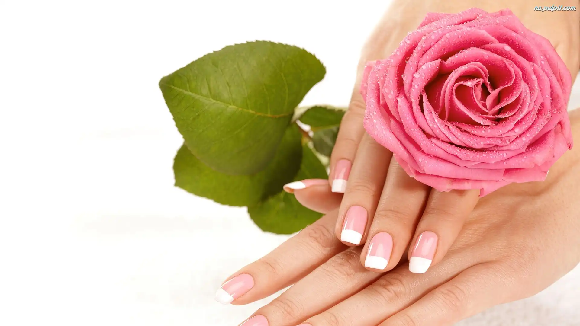 Dłonie, Zielony, Róża, Różowa, Listek