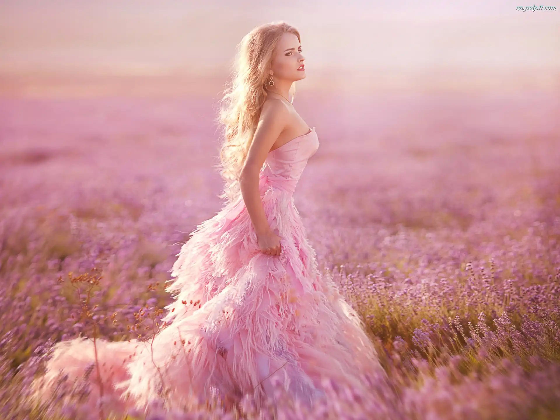 Bokeh, Długa, Suknia, Rozmyte, Tło, Pole, Blondynka, Lawendy Na Pulpit