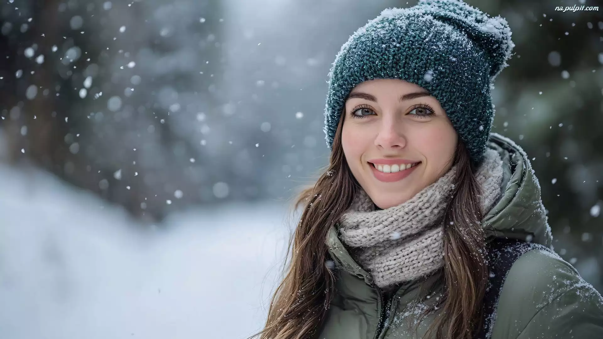 Włosy, Szatynka, Czapka, Kobieta, Kurtka, Szal, Uśmiech, Długie Na Pulpit