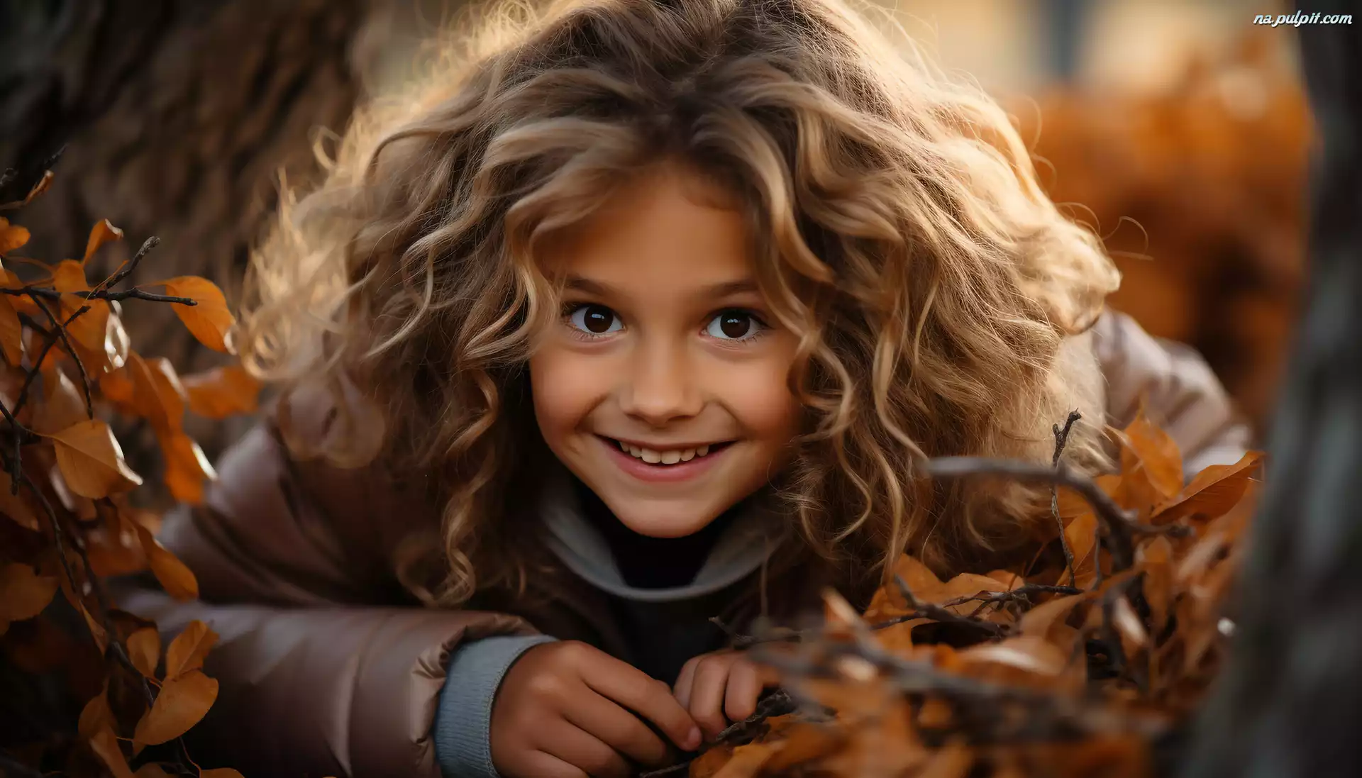 Kręcone, Dziecko, Dziewczynka, Długie, Uśmiechnięta, Włosy Na Pulpit