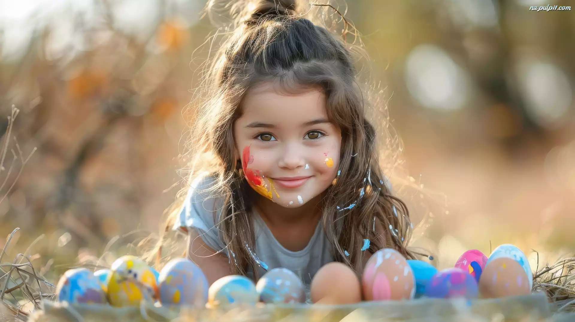 Twarz, Długowłosa, Dziewczynka, Jajka, Pomalowana