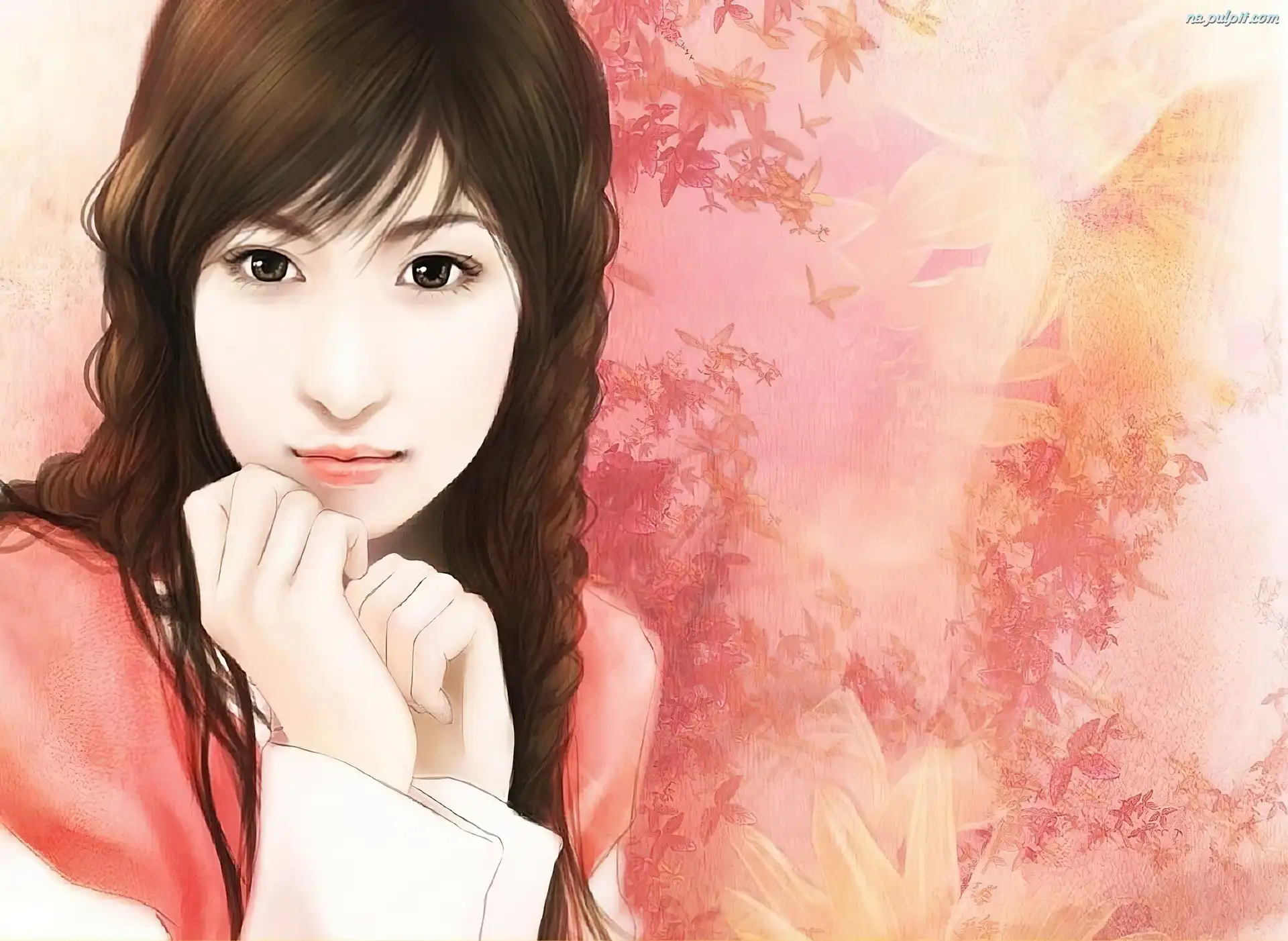 Japonka, Długowłosa, Piękna Na Pulpit