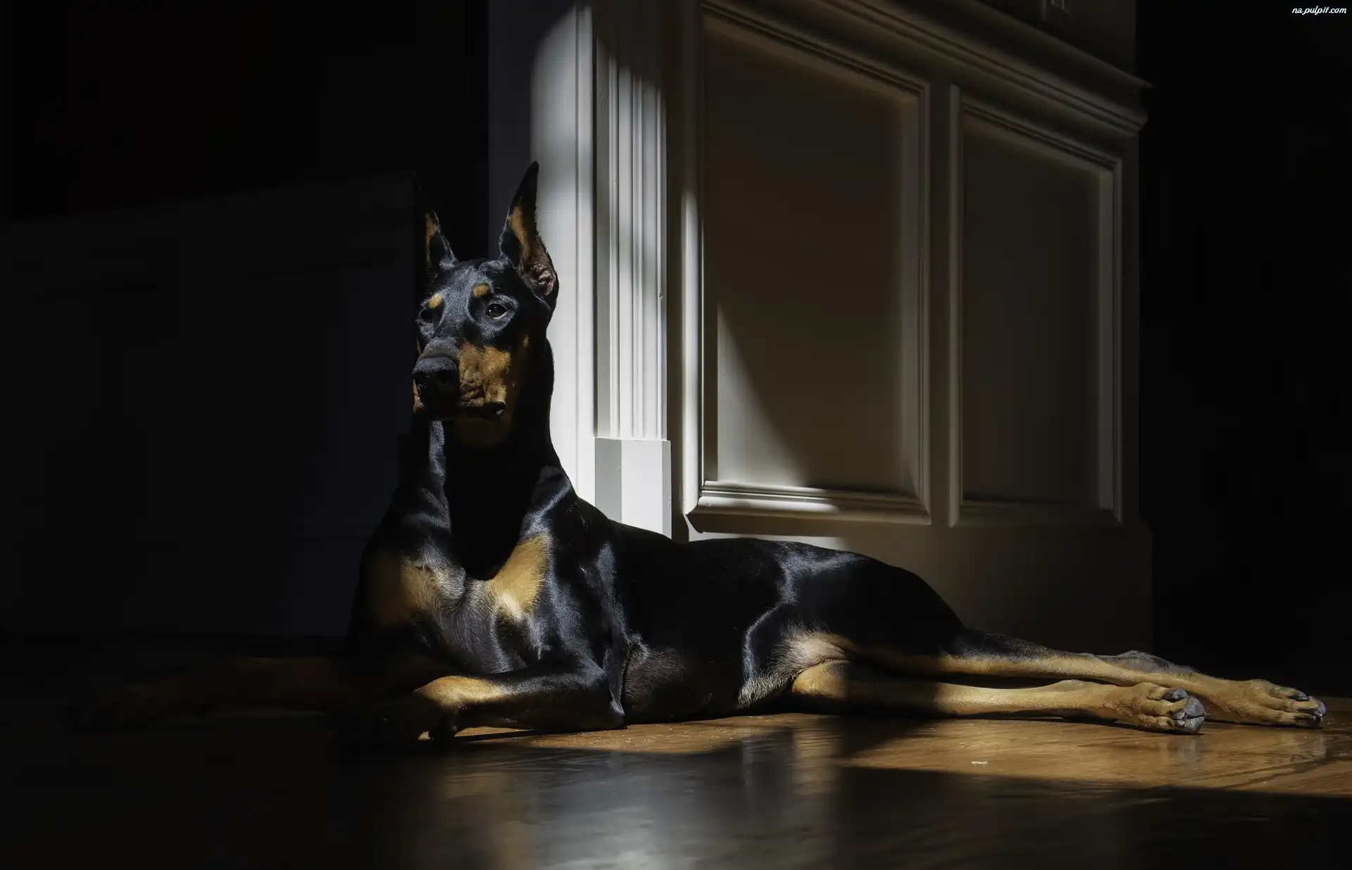 Światło, Pies, Doberman, Pokój