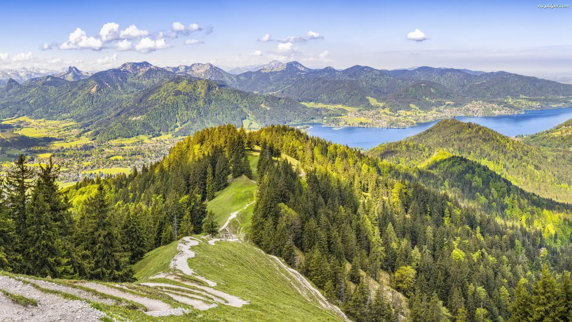 Lasy, Bawaria, Tegernsee, Góry, Drzewa, Jezioro Tegernsee, Alpy, Niemcy, Dolina Na Pulpit