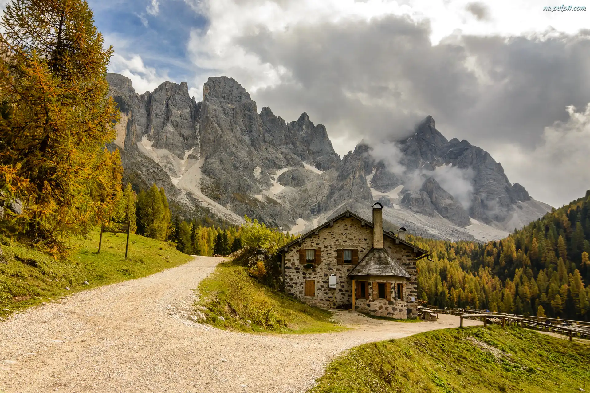 Dolina Val Venegia, Góry Dolomity, Droga, Dom, Włochy, Restauracja Malga Venegiota di Tonadico Na Pulpit |