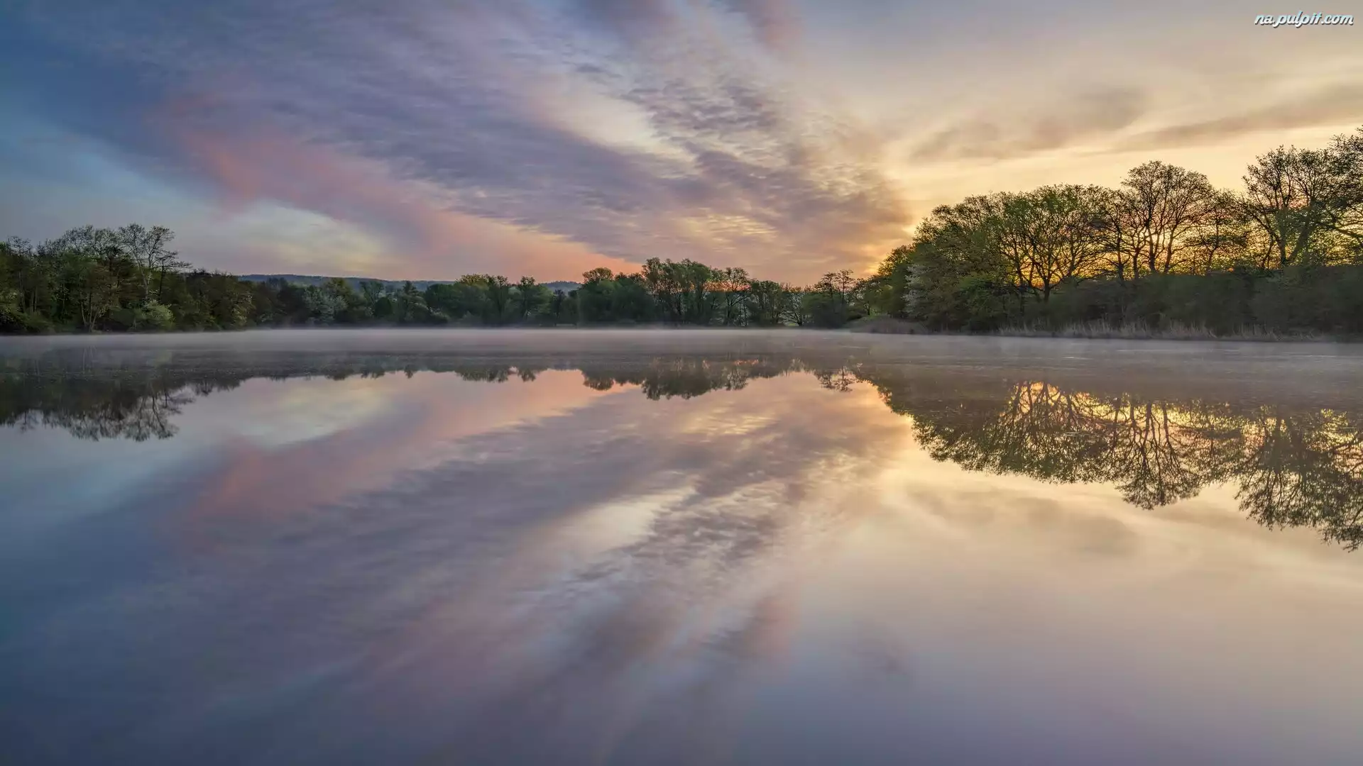 Dolina Wittlicha, Wschód słońca, Las, Jezioro Sterenbachsee, Drzewa, Niemcy Na Pulpit