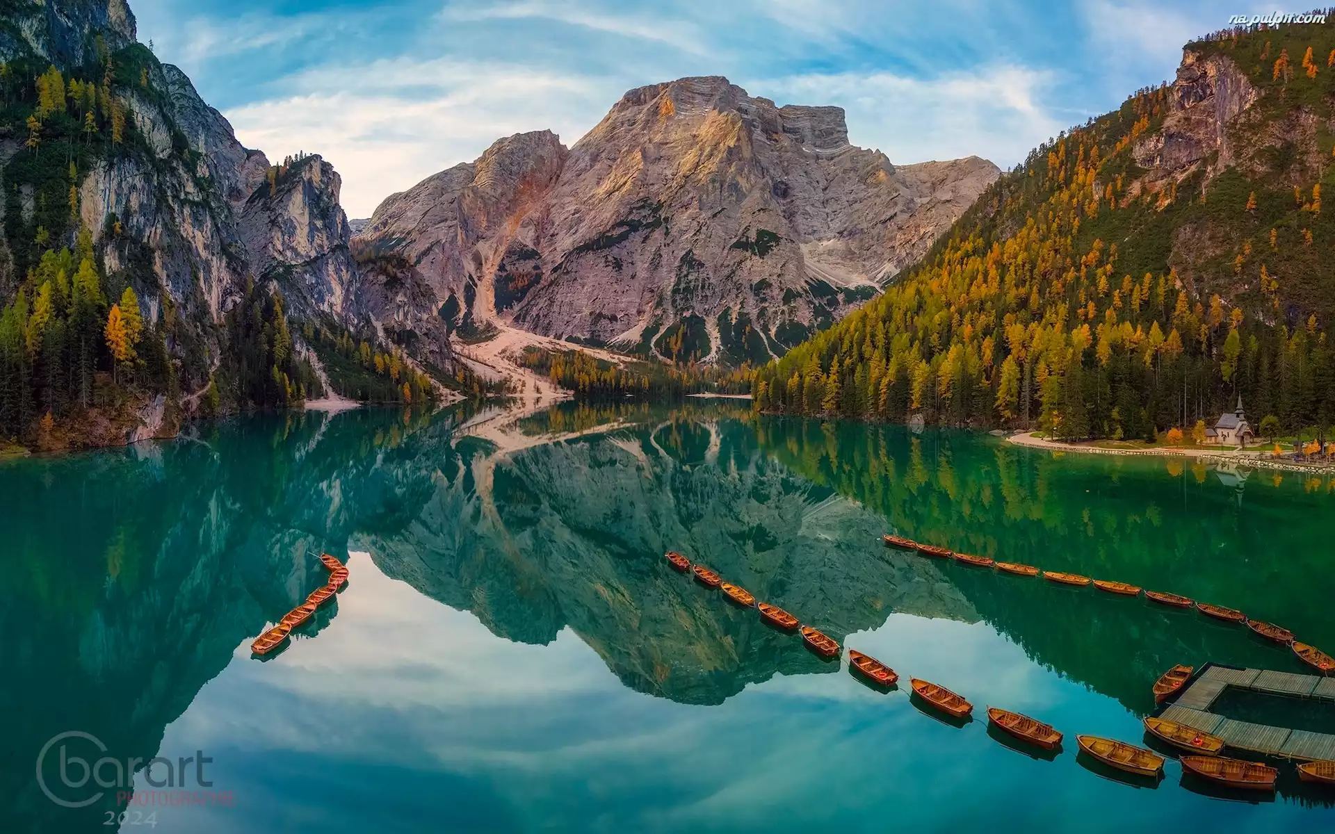 Pomost, Jezioro, Lasy, Południowy Tyrol, Lago di Braies, Dolomity, Włochy, Pragser Wildsee, Góry, Łódki Na Pulpit |