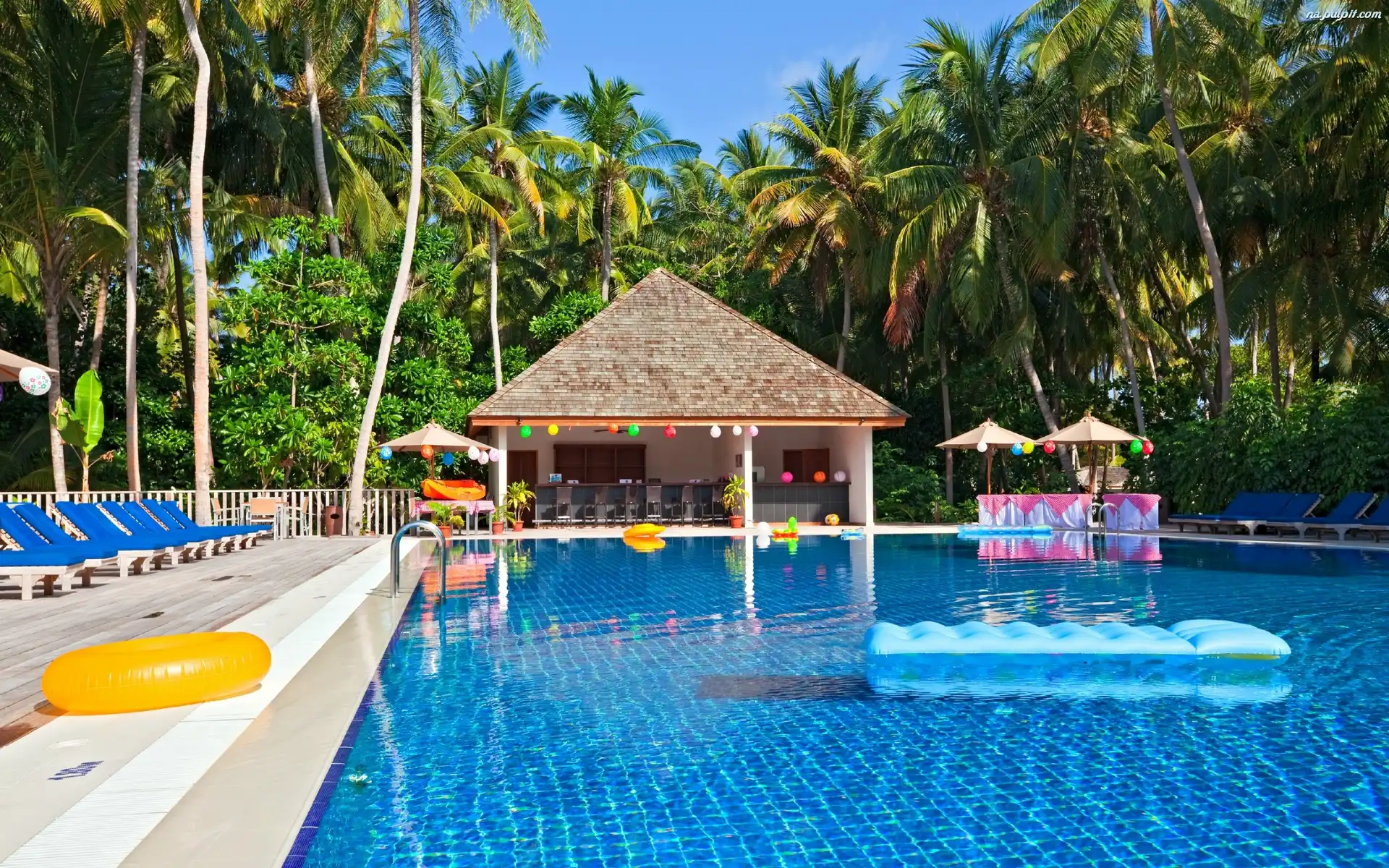 Dom, Kurort, Wakacje, Leżaki, Basen, Palmy Na Pulpit