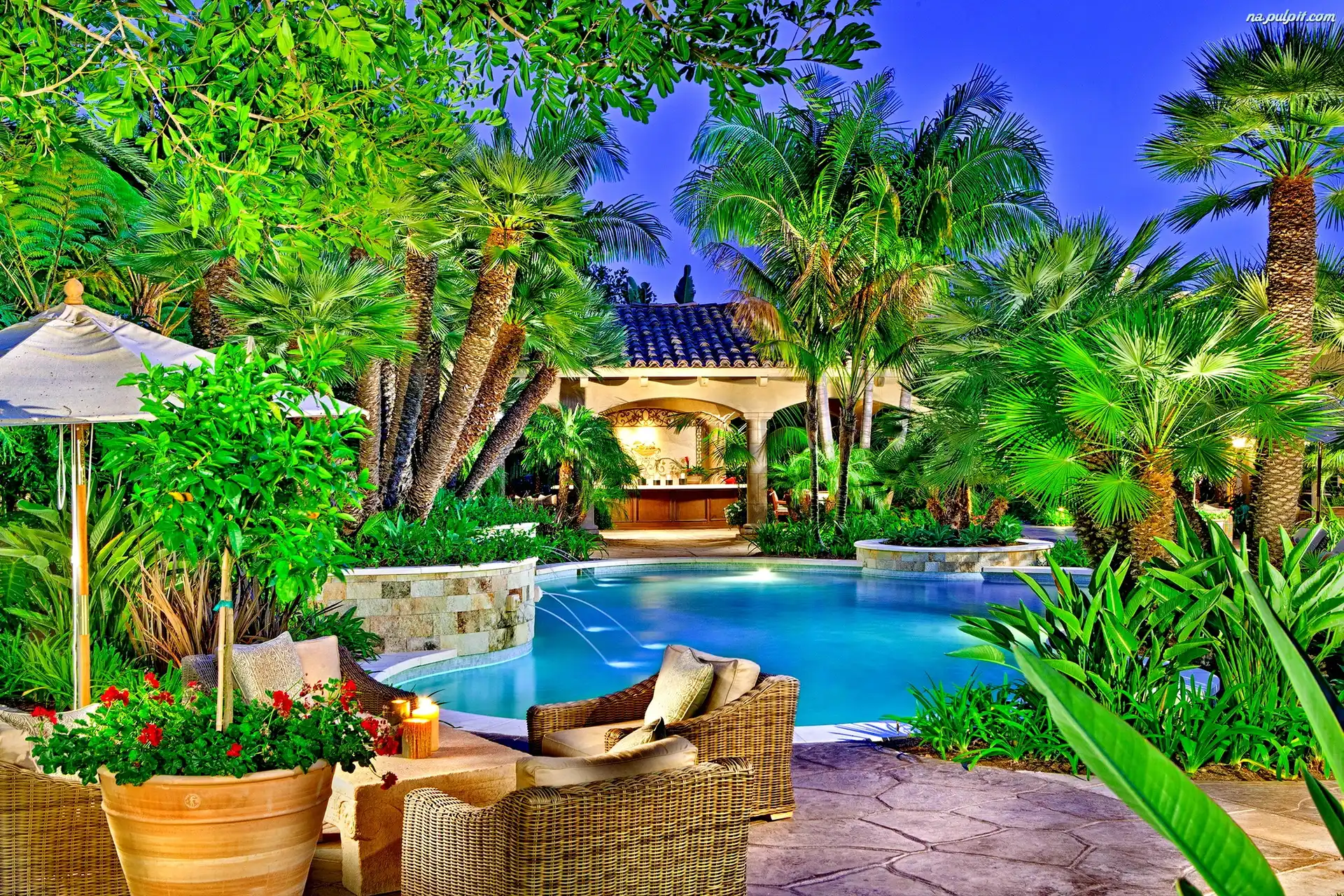 Dom, Fotele, Zieleń, Basen, Parasol Na Pulpit