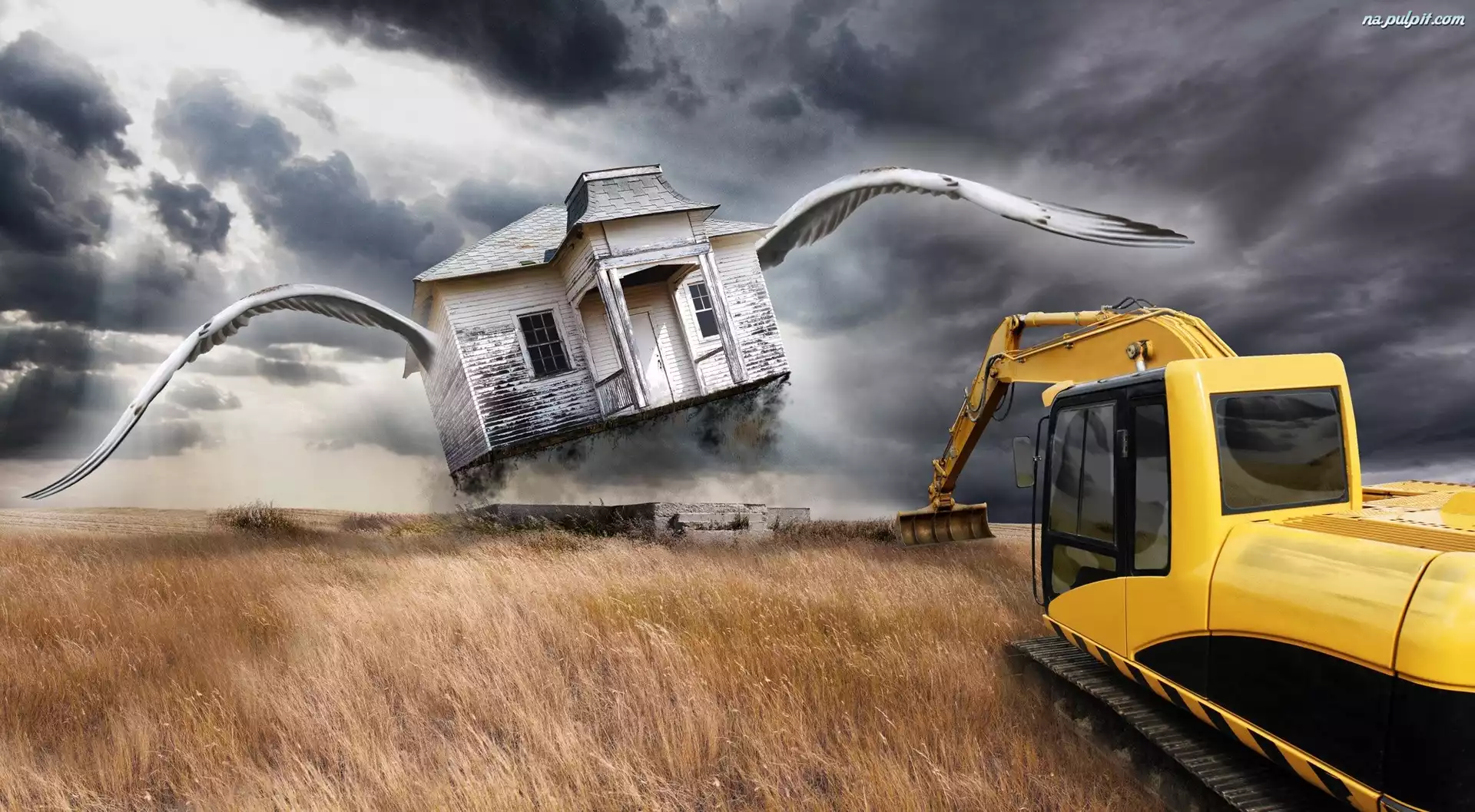 Dom, Pola, Chmury, LatajÄ…cy Na Pulpit