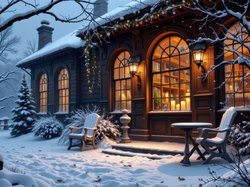 AI, Zima, Drzewa, Dom, Oświetlony, Okna, Śnieg Na Pulpit