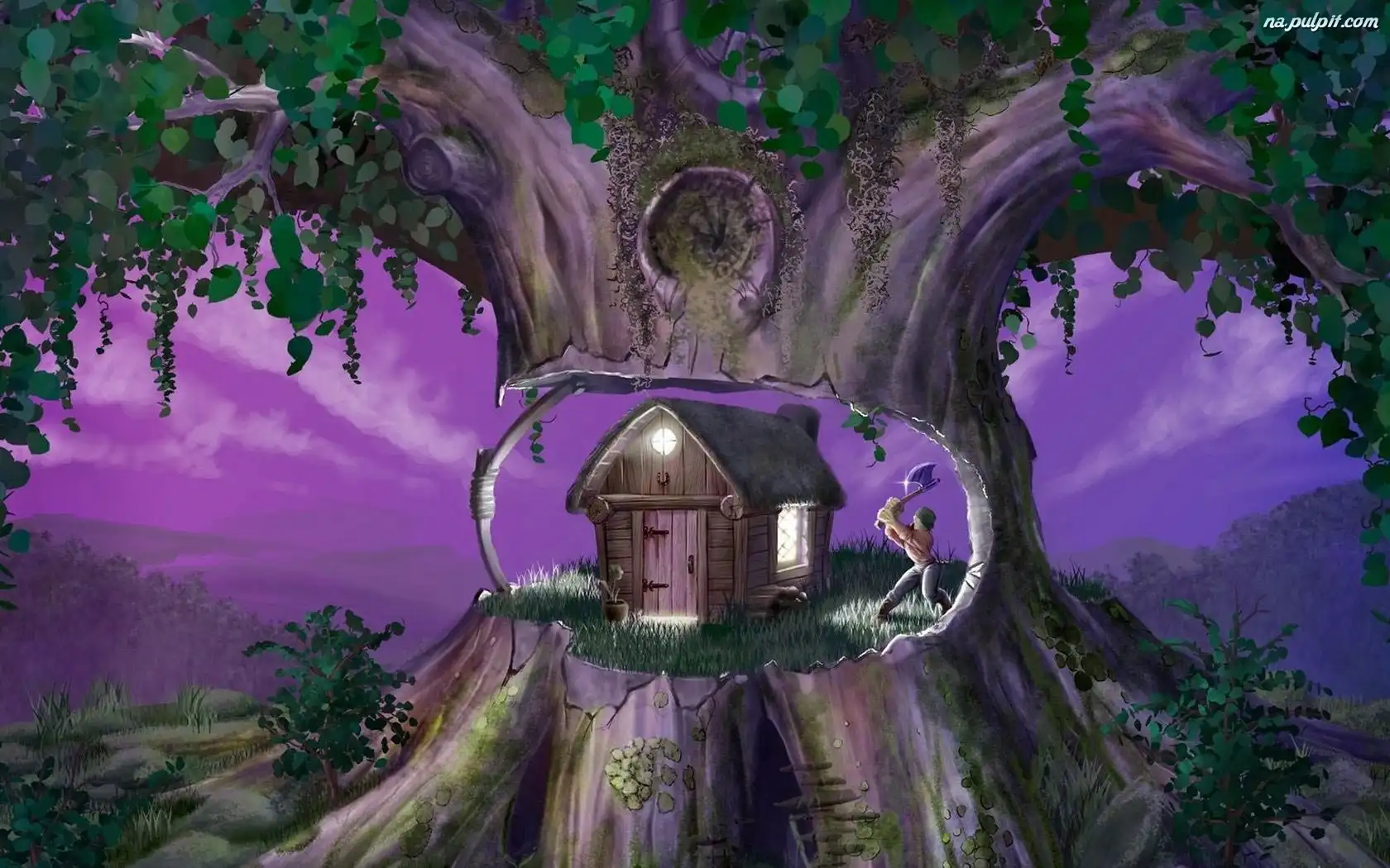 Drzewo, Dom, Mężczyzna Na Pulpit