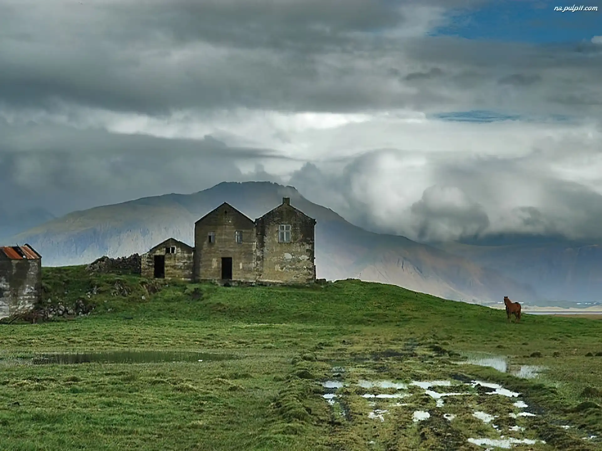 dom, Niebo, Chmura, Góry, koń Na Pulpit