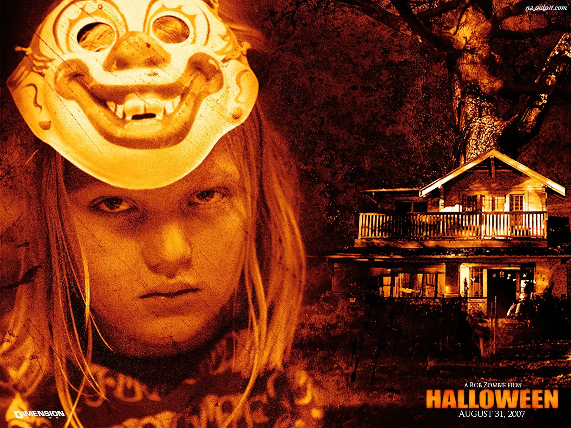 dom, dziewczynka, Halloween, maska Na Pulpit
