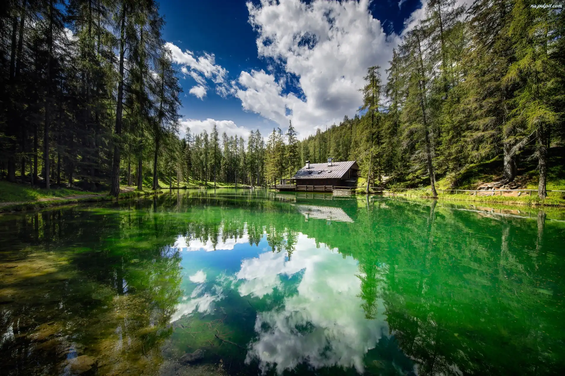 Drzewa, Cortina d Ampezzo, Las, Lago Ghedina, Jezioro, Włochy, Dom Na Pulpit