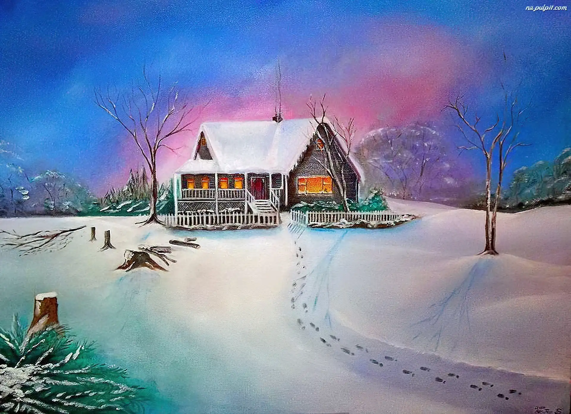 Śnieg, Dom, Zima Na Pulpit