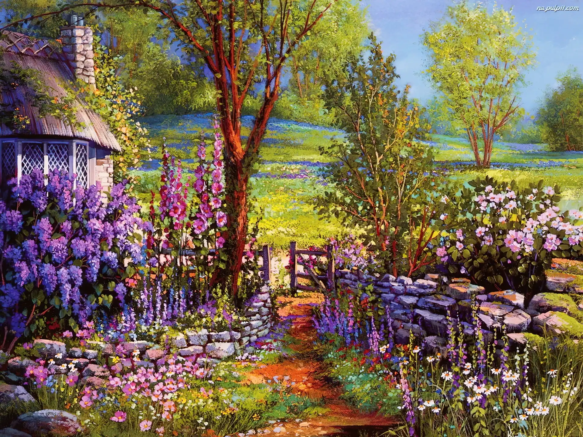 Ścieżka, Ogród, Dom, Kwiaty Na Pulpit