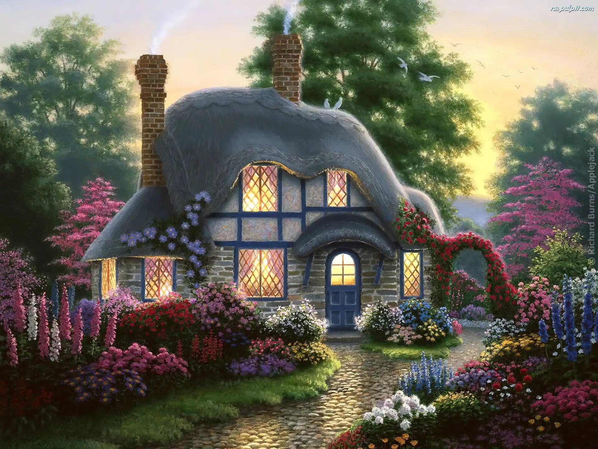Domki, Brukowiec, Most, Rzeka Domki, Korsyka, Wyspa, Góry Obraz, Olejny Domek, Oczko, Ławka, Drzewo, Wodne Alice X. Zhang, Ariel Kwiaty, Zielone, Dom, Drzwi Drzewa, Domy, Ogrody Słońca, Jezioro, Dom, Zachód Strumyk, Zielony, Ogród Posąg, Starówka, Kwiaty, Ludzie Donald Zolan, Rodzeństwo, Spacer Luis Royo, Indianie Obraz, Bitwa, Żaglowce, Morska Zimowit, Ogród