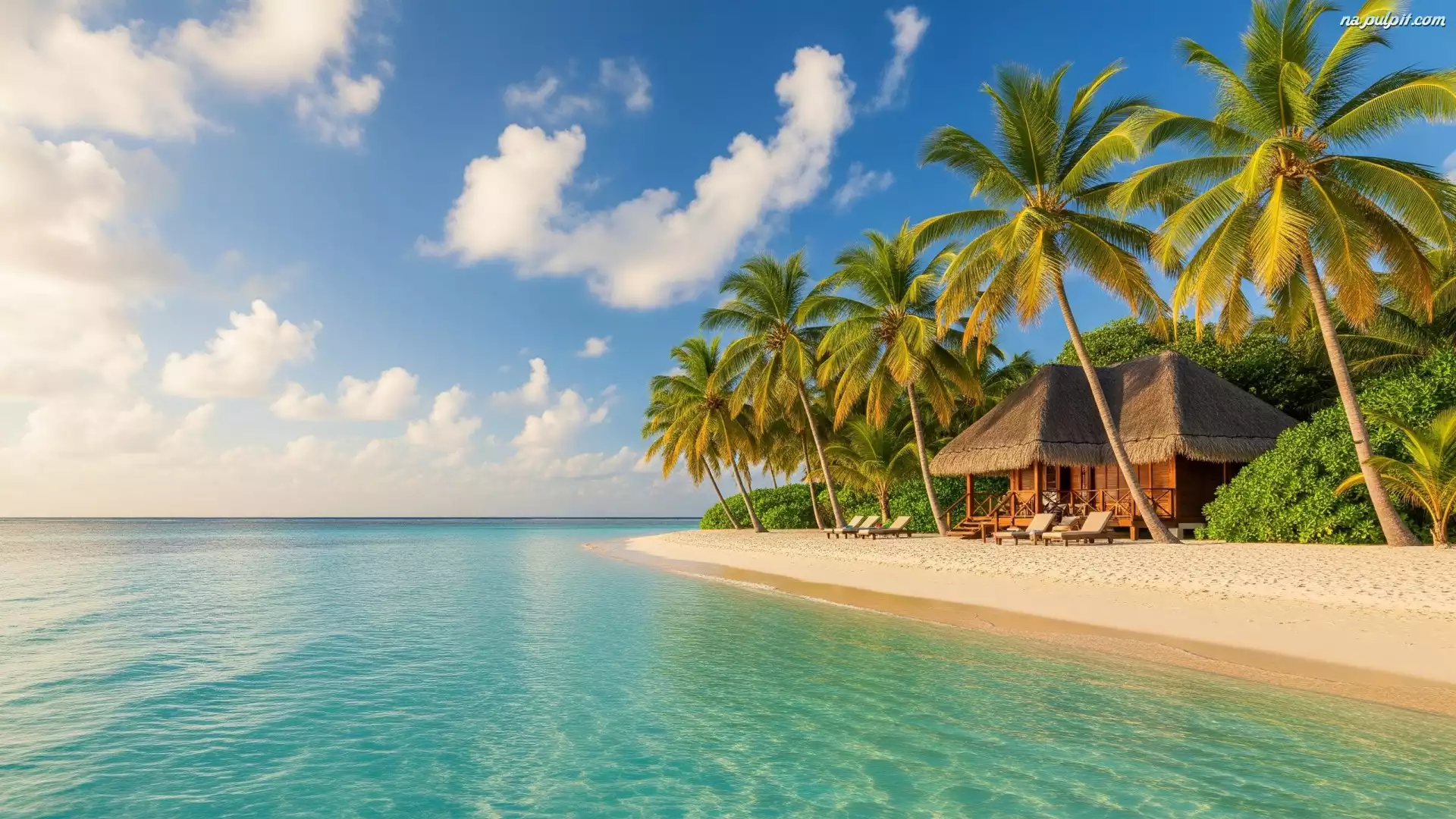 Morze, Dom, Palmy, Tropiki, Plaża Na Pulpit